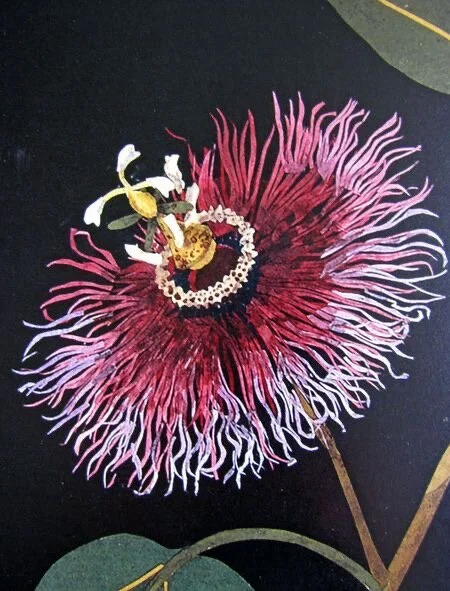 While enjoying her garden one day, she noticed that a piece of paper close by matched exactly the petal of a flower. She was inspired to create the first of almost a thousand cut-paper botanical collages in exacting detail. She used hand-dyed paper, wallpaper scraps, and other papers to create beautiful and accurate botanical works of art until her death at age 88.
