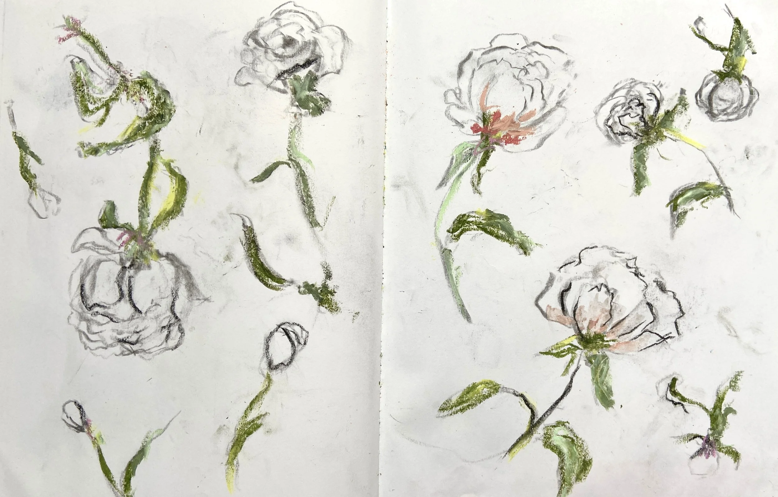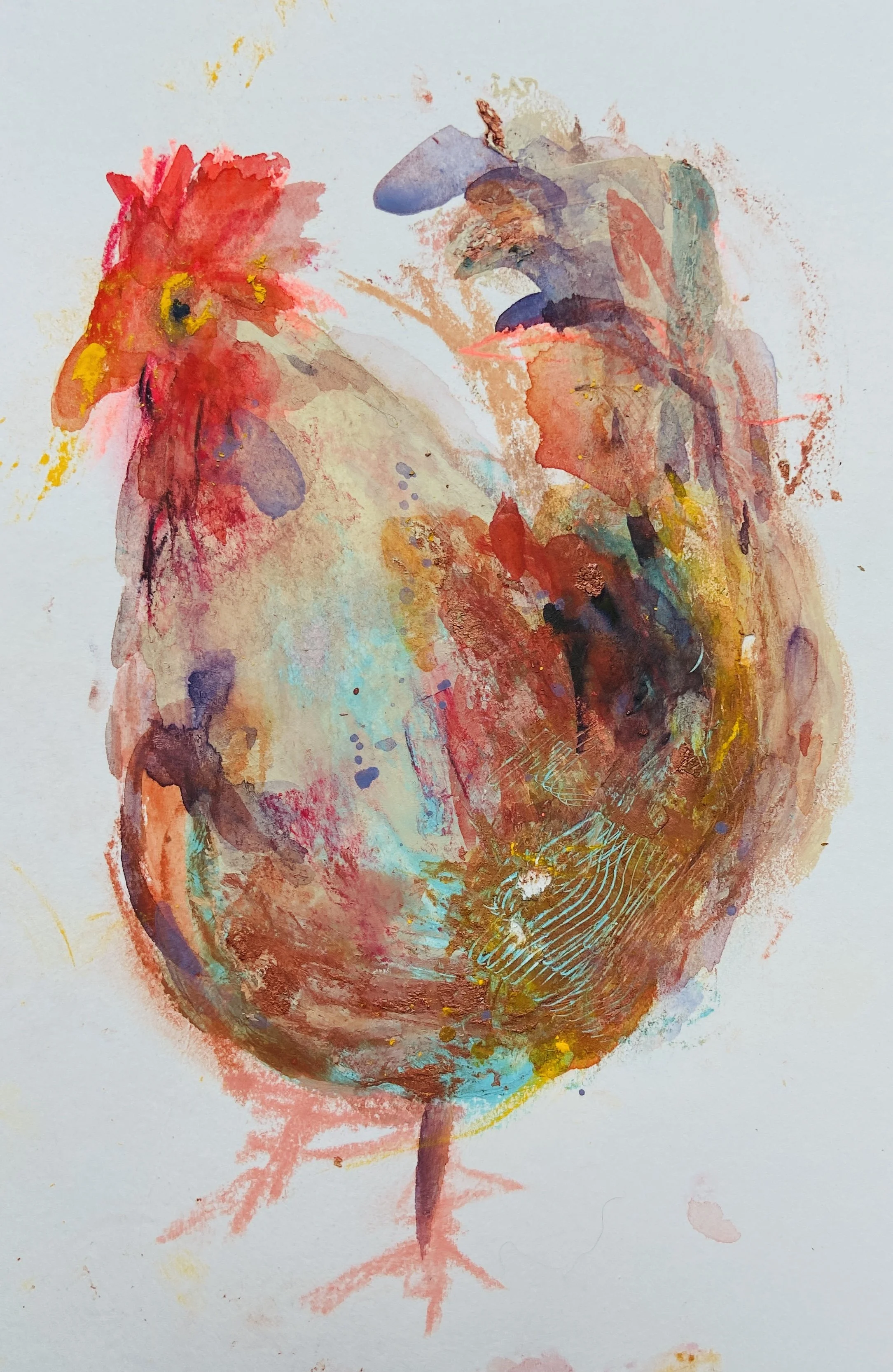 I have been dabbling in the studio. Not producing any great works of art but just playing. Finding an online class or two I haven’t spent enough time with, ruminating over next year’s calendar theme (circles? chickens? still life? Artist’s gardens? Hmmm….)