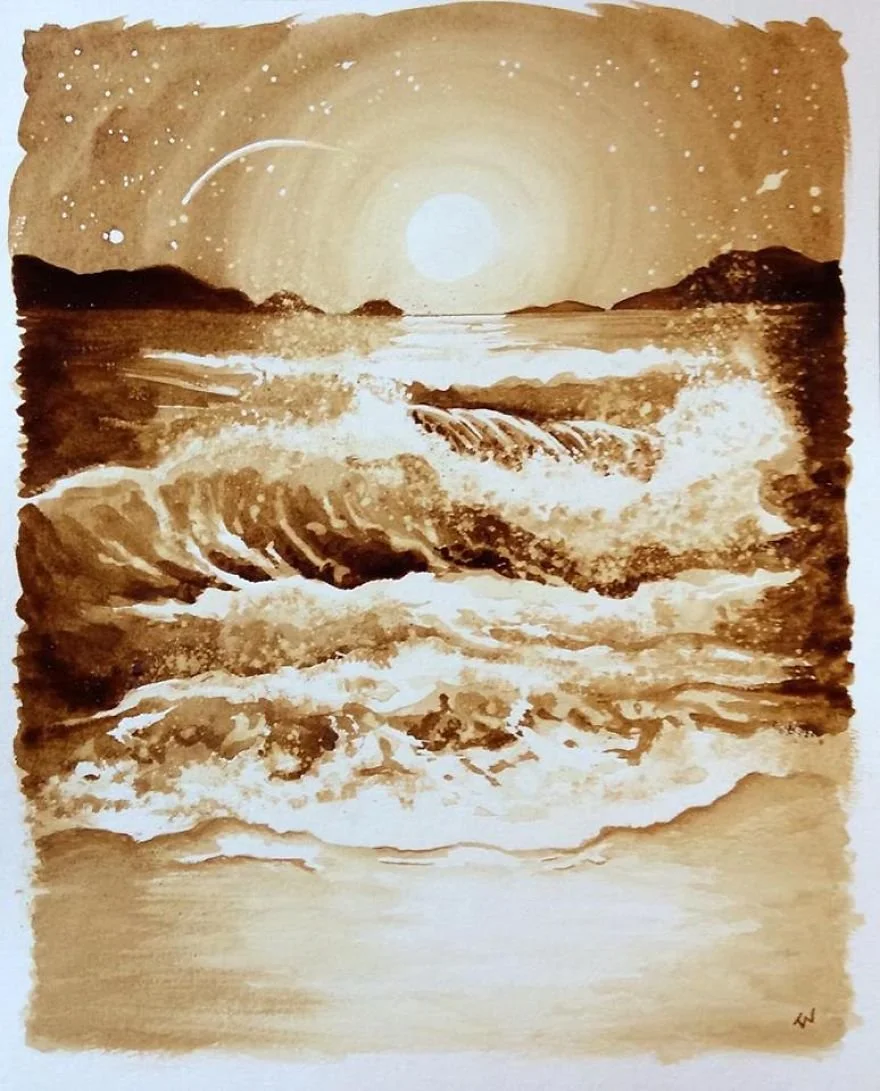 Tammie Wales paints with coffee. You can see her process and more of her work here.