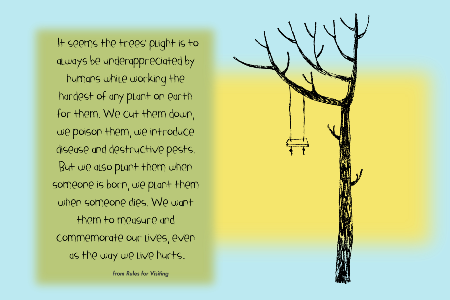 I’ve been sending postcards to a couple of friends to use my bulging library of digital resources and exercise some design muscles. Using quotable lines from Rules for Visiting, I am aiming for another 30-day-but-really-more-like-60!-day project.